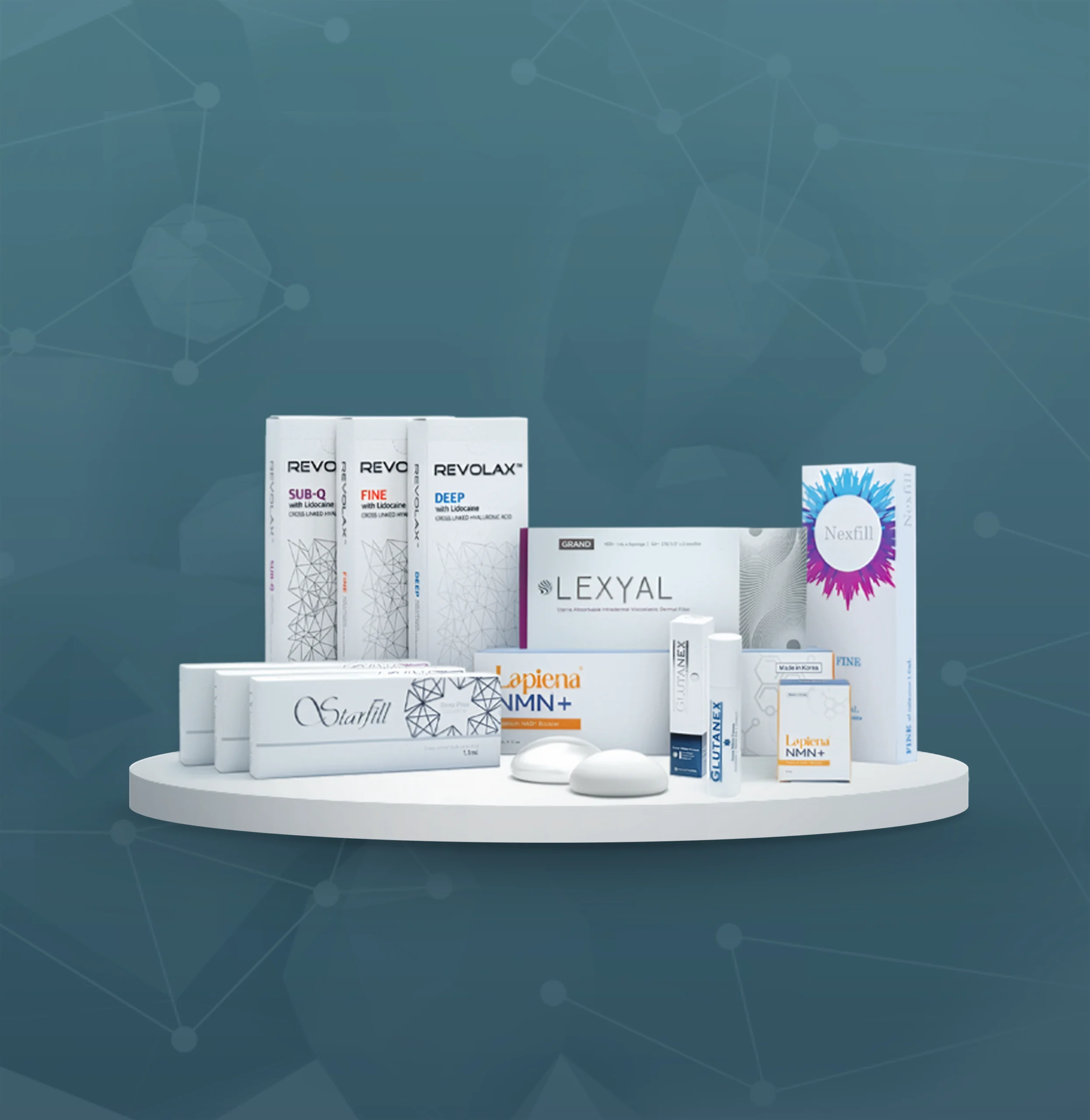 Official partner in Romania for brands like Revolax, Starfill, Lexyal, Nexfill, Lapinea NMN, Glutanex, Visiomed, Arnocel, Juderm and Cereform.